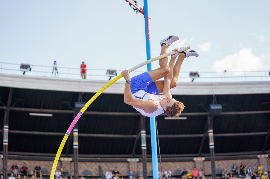 Embracing the cheers as he was welcomed to Stockholm’s Olympic Stadium, the 21-year-old cleared his opening height of 5.62m with ease before passing at 5.72m and then achieving 5.82m, 5.92m and 6.02m also on his first tries.