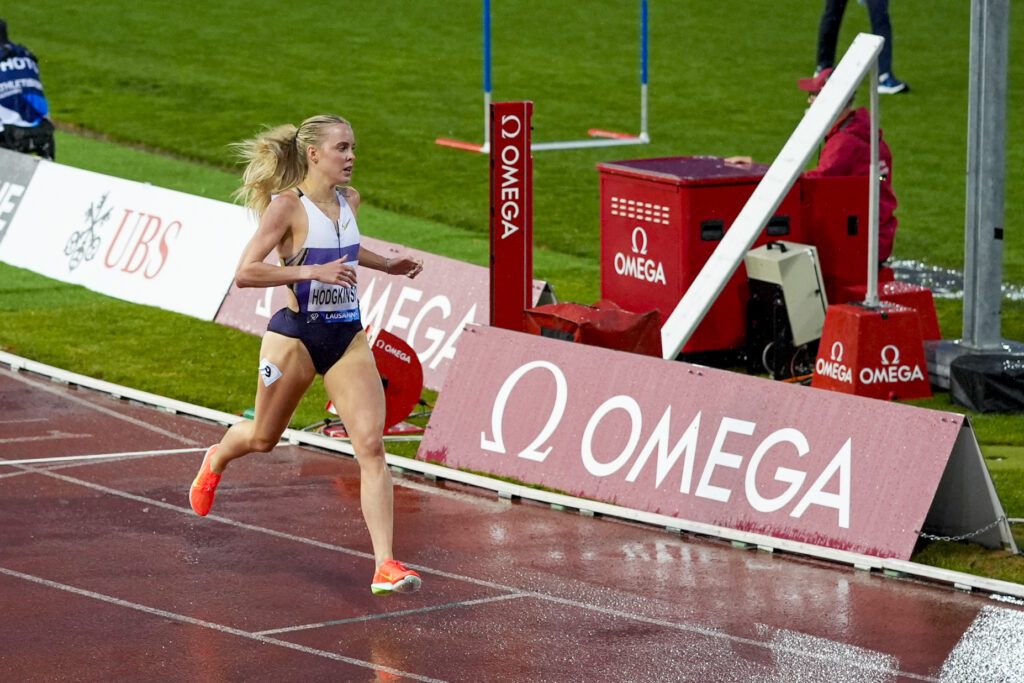 On a night when many Olympic champions struggled to deal with the conditions, Hodgkinson let the rain bounce off her as she stormed to another statement victory.