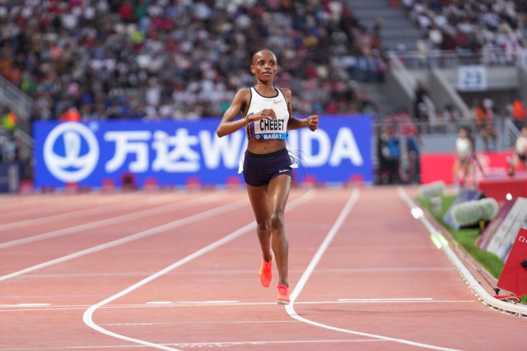 Nine months on from becoming the Olympic 5000m and 10,000m champion in Paris, Kenya’s Beatrice Chebet dropped down in distance to become the second-fastest women’s 3000m runner of all time at the Wanda Diamond League meeting in Rabat on Sunday (25).